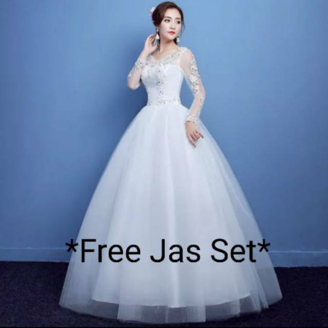Baju Pengantin Lengan Panjang Dress Pengantin Simple Gaun