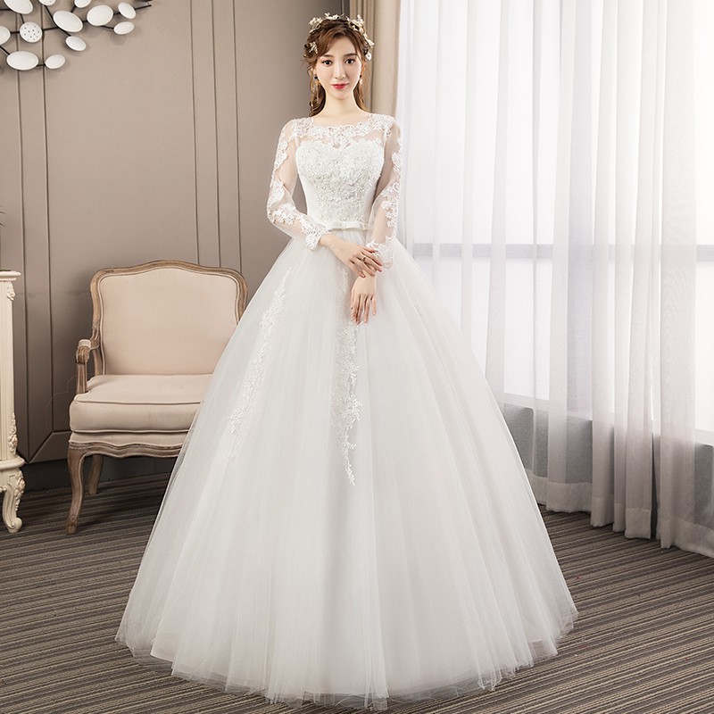 Elegant White Long Sleeve Lace Embroidery Wedding Ball Gown