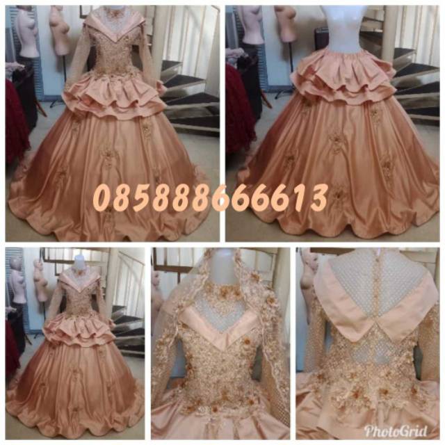 Jual Gaun Pengantin Tangan Panjang Mewah Gaun Pengantin Gold