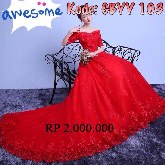 Jual Wh Wtz16126 Gaun Pengantin Wedding Dress Warna Merah Import